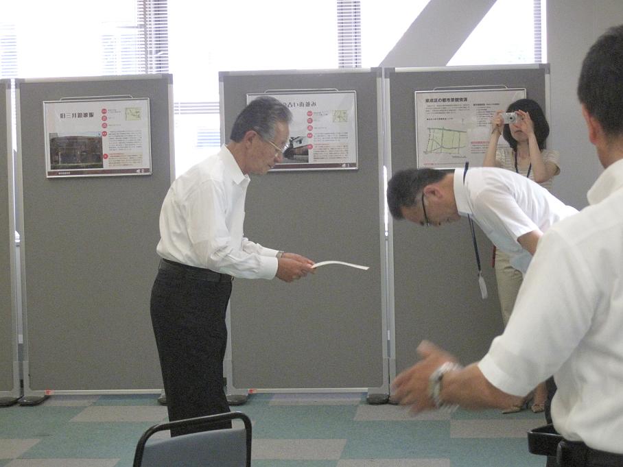 今日、東成区役所において、都市景観登録証交付式