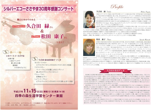 「ヴァイオリニスト」久合田緑さん&「ピアニスト」松田康子さんを迎えて