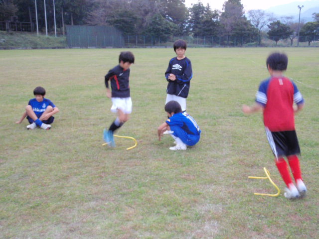 みんなも意欲的に取り組んでくれているのですごく良くなっているし、足が速く、細かく動くというのは何をするにも役立つので大事にしてほしいと思います(%笑う男%)(%笑う男%) 陸上の練習の後にはきついようですが、これは絶対に無駄にはならないのでがんばってほしいと思います!!ジャンプも30回に近い回数の子が増えてきたし(25以上)、十字ジャンプもだいぶ『重心』が良くなってきました(%笑う男%) 腰ごと動いていたのですが、今は足だけをうまく動かせるようになってきています(%笑う男%)(%星%)