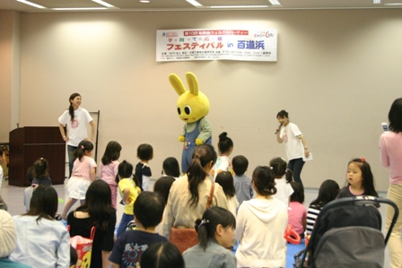 共催の育児情報誌子づれ(DE)CHA・CHA・CHA!のスタッフと一緒に、ステージイベント、ブース、情報コーナーの準備や集客にばたばた。