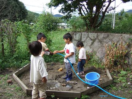 お水を使って泥んこ遊びをしたり、