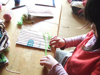 おままごとや毛糸で編んだ紐をつないで遊んでいます。