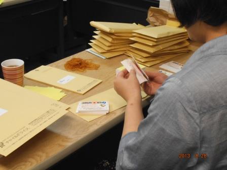 8月28日には今年も日興アセットマネジメントの社員のみなさまが終業後に支援センター事務所までお越しくださり、ボランティアのみなさんと一緒に発送作業をお手伝いくださいました。