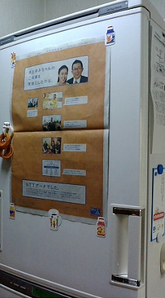 総動員して(輪ゴム掛けまで)、前面扉にドーンと貼りました(%ハート%)。