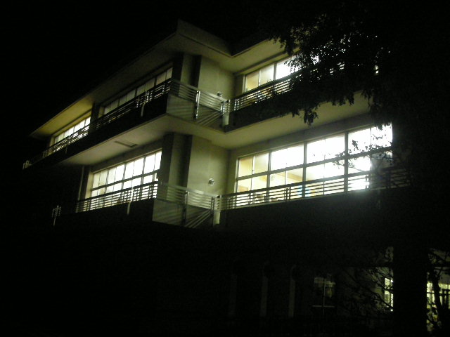 櫻ヶ岡中学校の中平です。いよいよ明日、とがびアートプロジェクト2007が開館します。写真は、夜遅くまで作品準備が続いている戸上中の外観です。明日から二日間、私・中平は、このブログで、1時間おきぐらいの「とがび生中継」を行います。お楽しみに!