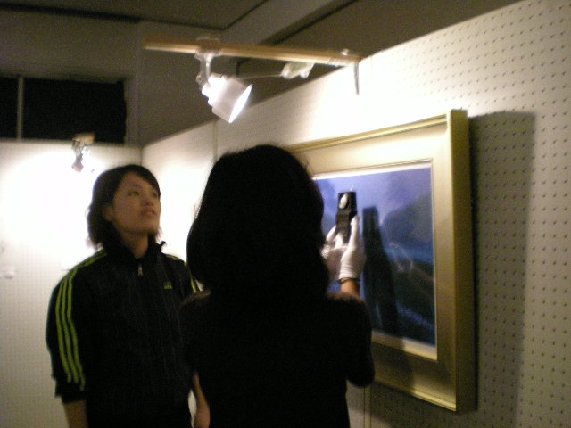 今年の東山チームは美術部の2年生。夏休みに美術館に訪問しましたが、今回は、勉強不足の面が多いのです。今日は、学芸員さんに照度の測定方法や、展示の仕、作品に取り扱いなど教えてもらいました。ほんのもの作品を扱うのは大変なことです。美術部の2年生は今年、重要な仕事を全て行っています。今日は、かなりの力仕事の後、この作業でした。くたくたの中、緊張してすごした時間でした。この展示では、東山魁夷の中学生の時の自画像をメインに、長野市内の中学校の自画像が展示されます。