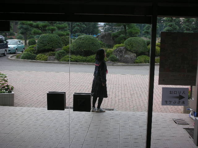 8時30分。信濃美術館からの絵の到着を待っている生徒。