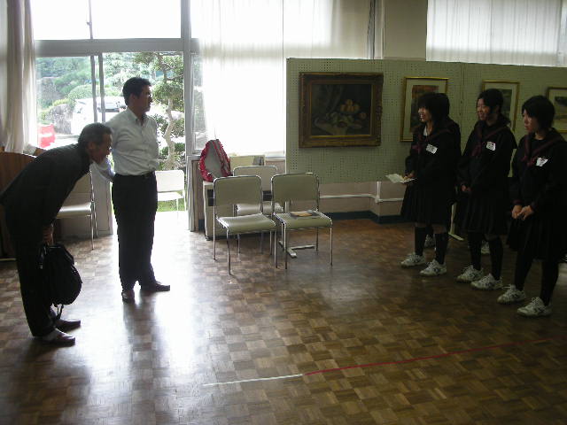 今回、油絵作品を展示してくださっている宇和島出身の画家・森本秀樹さんが、たったいま、到着されました。ご本人が展示場所の会議室にいます。是非、お会いしに来てください。