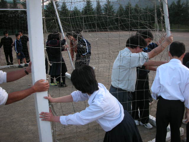 ハンモックプロジェクトでは、サッカーゴールを使い、今までに感じたことのない、ゆったりした時間を感じることができました。二日間、ハンモックを支えてくれたサッカーゴールを、キッズ学芸員で力を合わせて移動しました。