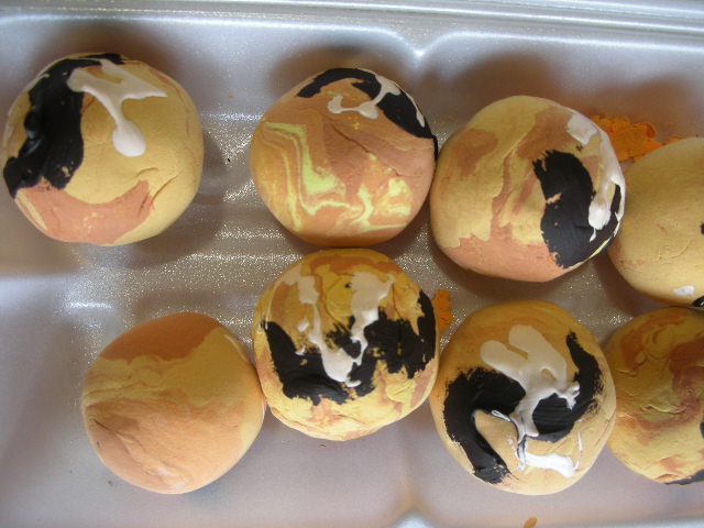 見るからにおいしそうなたこ焼きです。ソースもマヨネーズもかかっています。保育園の園児さんが、「おいしそう!」と言って、食べるまねをしていました。青海苔があったほうが良かったかな??