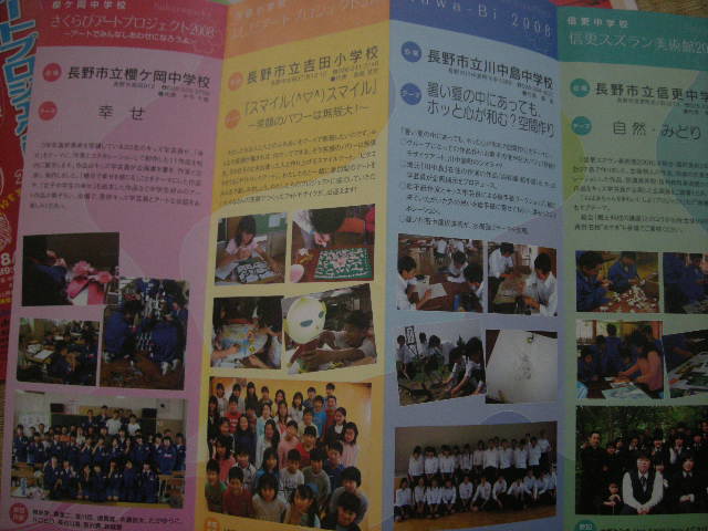 Nプロジェクト実行委員会事務局の中平です。ながのアートプロジェクト2008開催まであと一ヶ月。4校の様子が掲載されたパンフレットが完成しました。このパンフレットを見て、4校を巡ってくださる方が増えるといいなあと思いました。近々皆様のお手元にも届くと思います。
