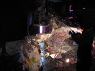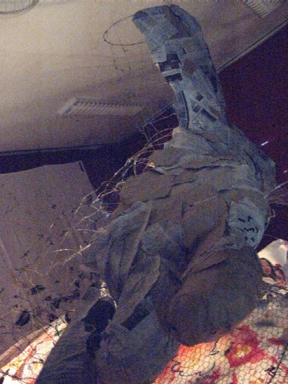 なんだか薄暗い部屋にとても大きな建造物が・・・。針金が張り巡らされ、物凄いでかいです。