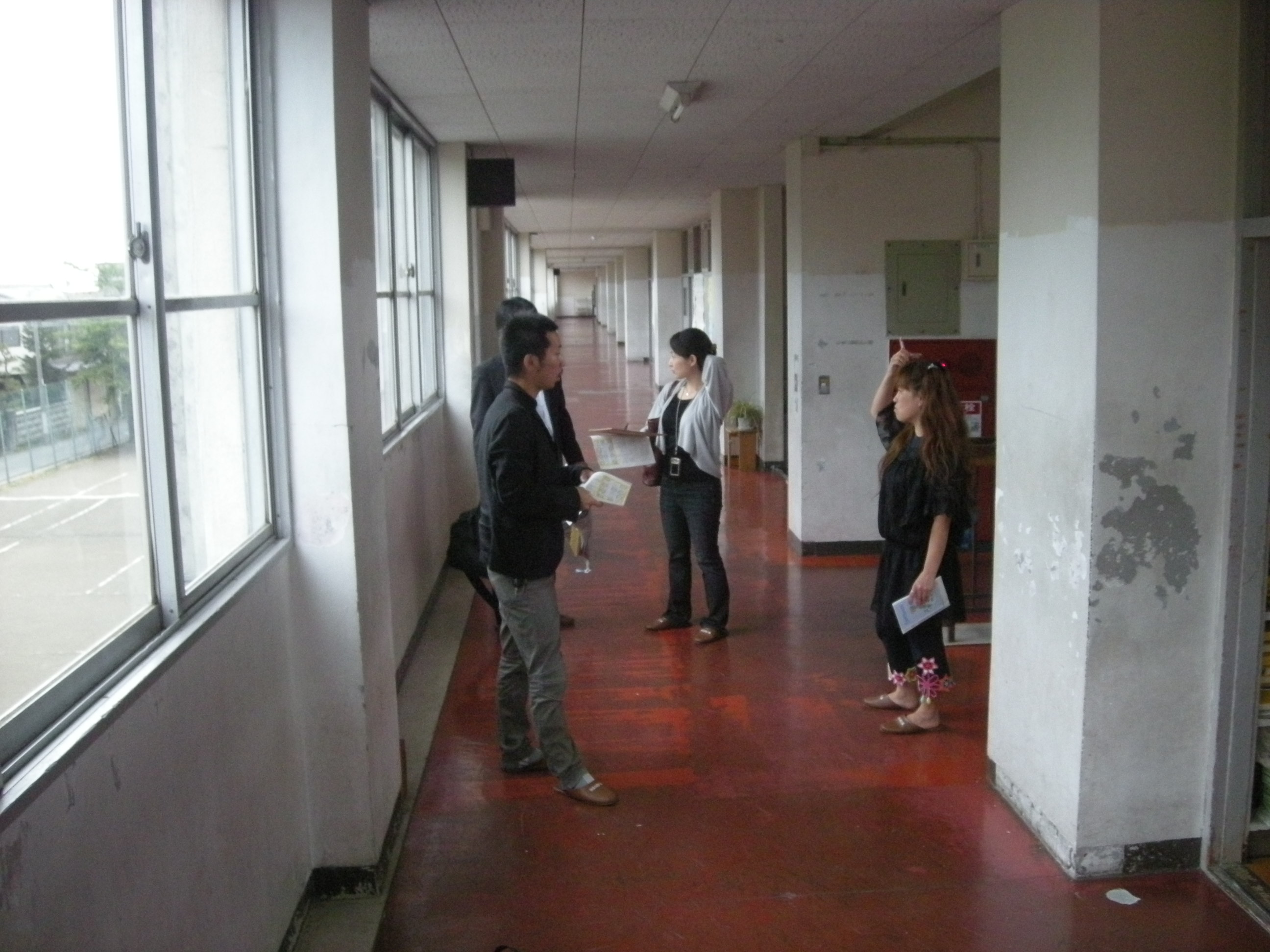 櫻ヶ岡中学校の中平です。今日の午後6時、さくらびアートプロジェクト参加希望作家の皆様5名が来校され。校舎内をご覧になりました。