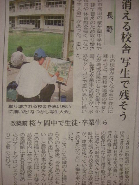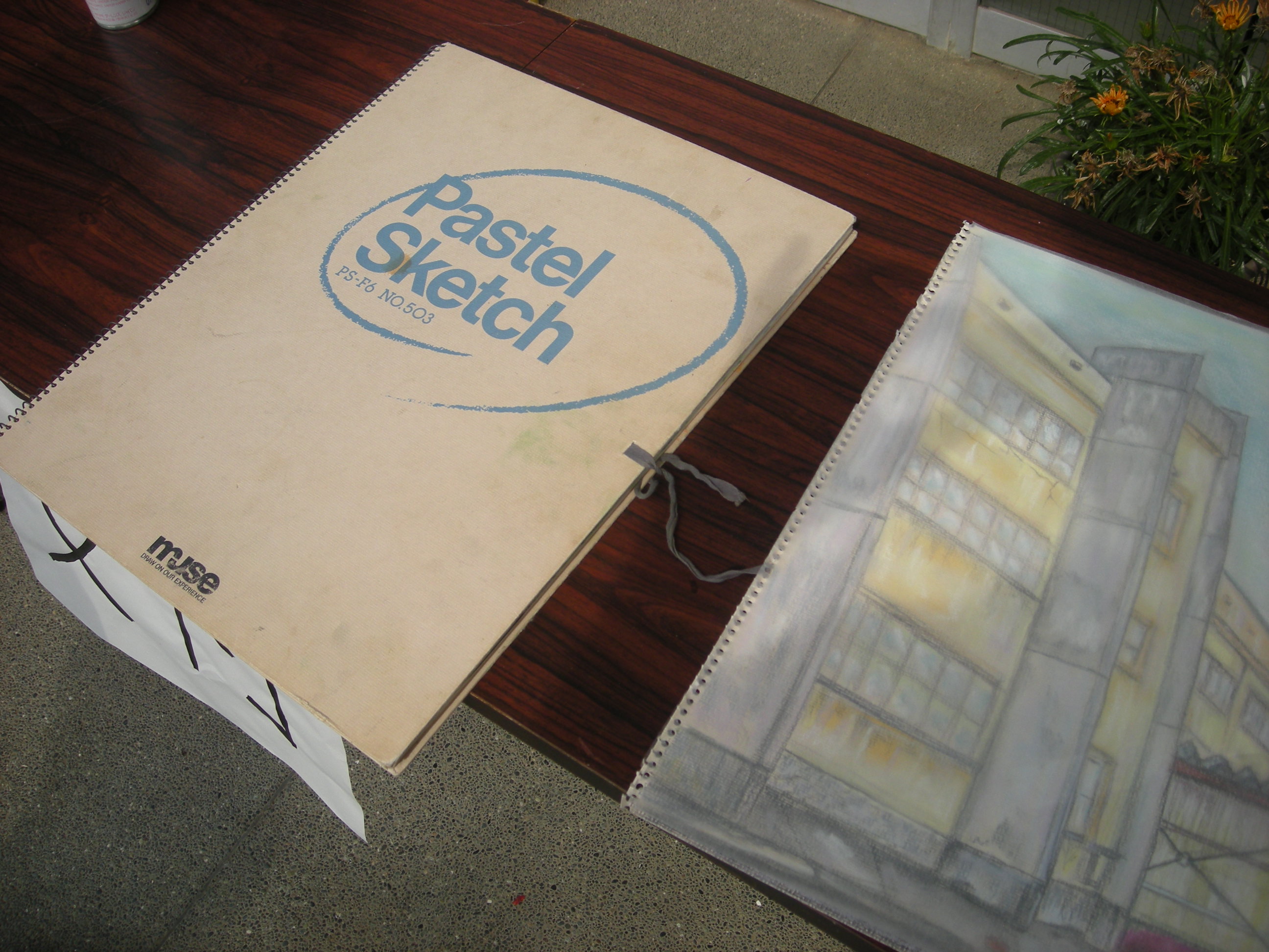 写真は、給食などを配るコンテナ室の東側を書いてくださった方のスケッチブック。なんと、数十年ぶりに、このスケッチブックを使ったそうです。校舎への思いというか、学校を描くということは、本当にその人の思い出を呼び戻すんだなあと感じました。「こういう機会があったから、学校を見に来ることができました」と言われると、ああ、やって良かったなあという思いを持つことができます。地域の皆様、本当にありがとうございました!!8月29日のさくらびアートプロジェクト2009で、展示しますので、是非ご来場ください。