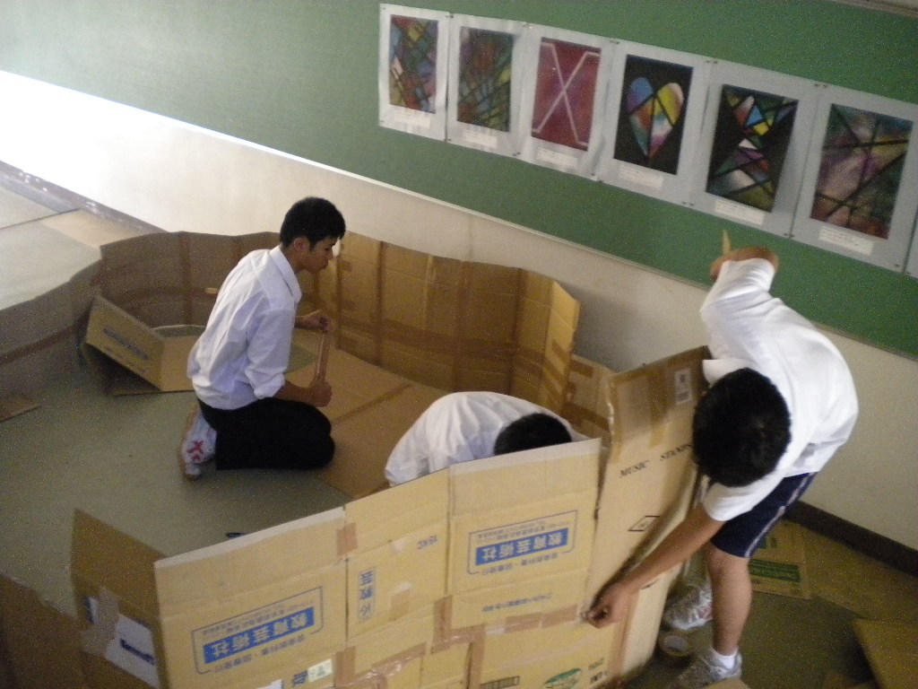 写真のグループは、プラネタリウム「プラネタン」を制作中。