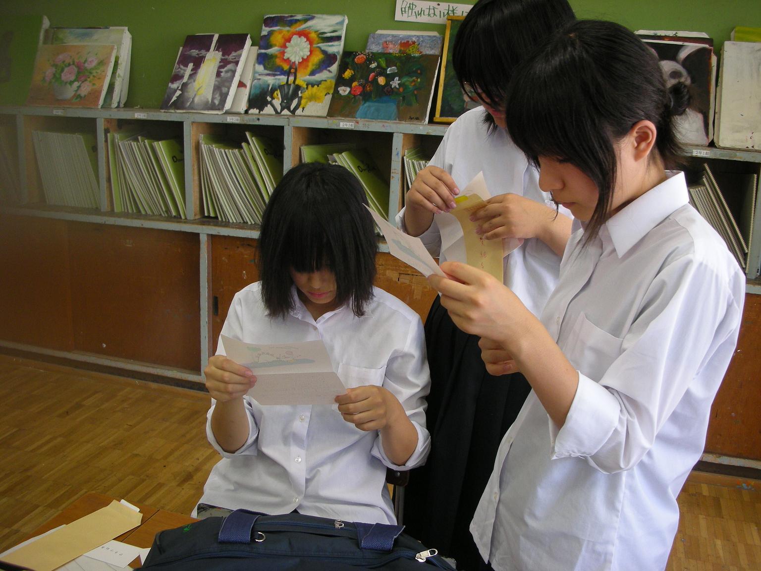 戸倉上山田中学校の中平です。美術部2年生宛てに「ひさつねあゆみさん」から手紙が届きました。10人一人ひとりに手紙がきたのです。プロジェクトの課題が書かれている手紙です。生徒たちは、自分の宛ての手紙に感激しながらも、責任感を強く感じたようでした。