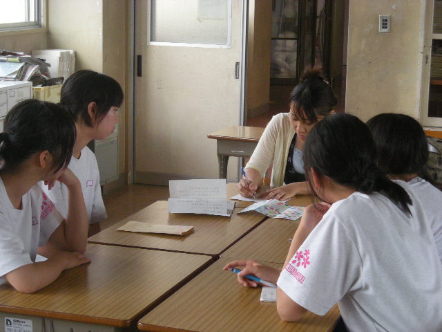 3年選択美術の中條チームの作家である、武蔵野美術大学学生の高貫結実乃さんが、初めて来校され、生徒と打ち合わせをしました。やっぱり、大人がチームに入ると生徒の顔が違います。緊張感というか、生き生き感というか、やる気がいつもと違います。材料のことや、展示の方法など意見をお互い出しているうちに、さらに良いアイデアが出たようです。