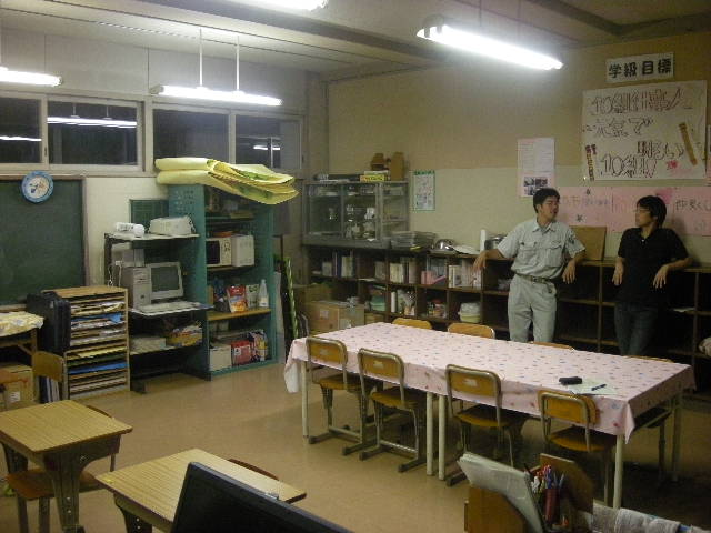 午後7時過ぎ、長野市内の建築家チームと、ヘアアーティストの水谷さん、グラフィックデザイナーのロボさんら5名が集まり、現場を見て打ち合わせをしました。建築家の宮本圭さんは、ツリーハウスなユニークな活動をされています。今回、教室を使って、教室の材料で教室を作る?そうです。視点が面白いと思いました。見た人がどんな顔をするのか楽しみです!!