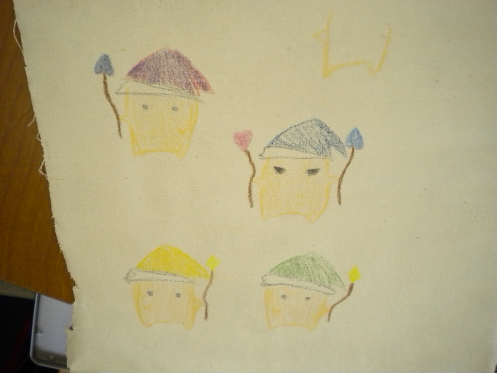 戸上中の中平です。美術部の2年生たちは、ひさつねさんからの課題に取り組んでいます。布にジェッソを塗って、色鉛筆や、アクリル、マジックを使って描いてみました。ジェッソ初体験の生徒たちでしたが、いろいろな物で描けることがわかったようです。写真は、色鉛筆です。私もはじめて見た感じです。この布がどんな形になっていくのか楽しみです。