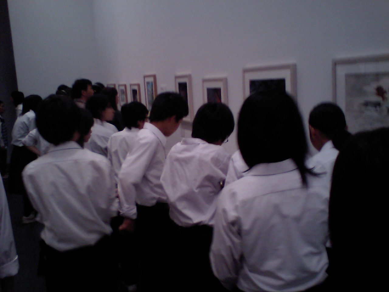 戸上中美術部35名で、信濃美術館で開催されている男鹿和雄展に行ってきました。ジブリのアニメで見たことの風景に見入っていました。これって写真?という声もしていました。私たちの田舎暮らしでは、どこかにあるような風景で、安堵感のある作品に生徒たちも作品の世界に入り込んでいました。追求した鑑賞をしている3年生にとっては、時間が足りないほどでした。中学生の成長ってすごいです。1年生の時と3年生の時では、鑑賞する時間もまったく違います。1年生から3年生の作品鑑賞の視点の違いに私も勉強になりました。