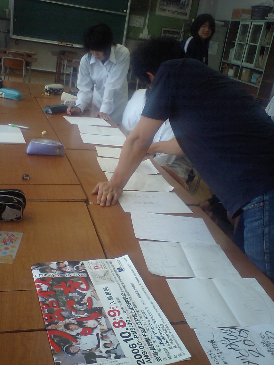 戸上中の中平です。寺島デザイン事務所の寺島先生とポスター、パンフレットのデザインの打ち合わせをしました。この日は、宿題だったアイデアスケッチをプレゼンテーションしながら、候補を絞っていきました。やはり、とがびは、はちきれそうな元気なイメージがなのですね。今年も期待できそうです。