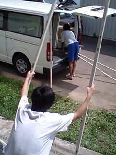 灼熱の太陽のもと、汗だらだらになって運んだけっか、男子諸君は会話がなくなってしまうほど疲れてしまいました。ご苦労様でした。
