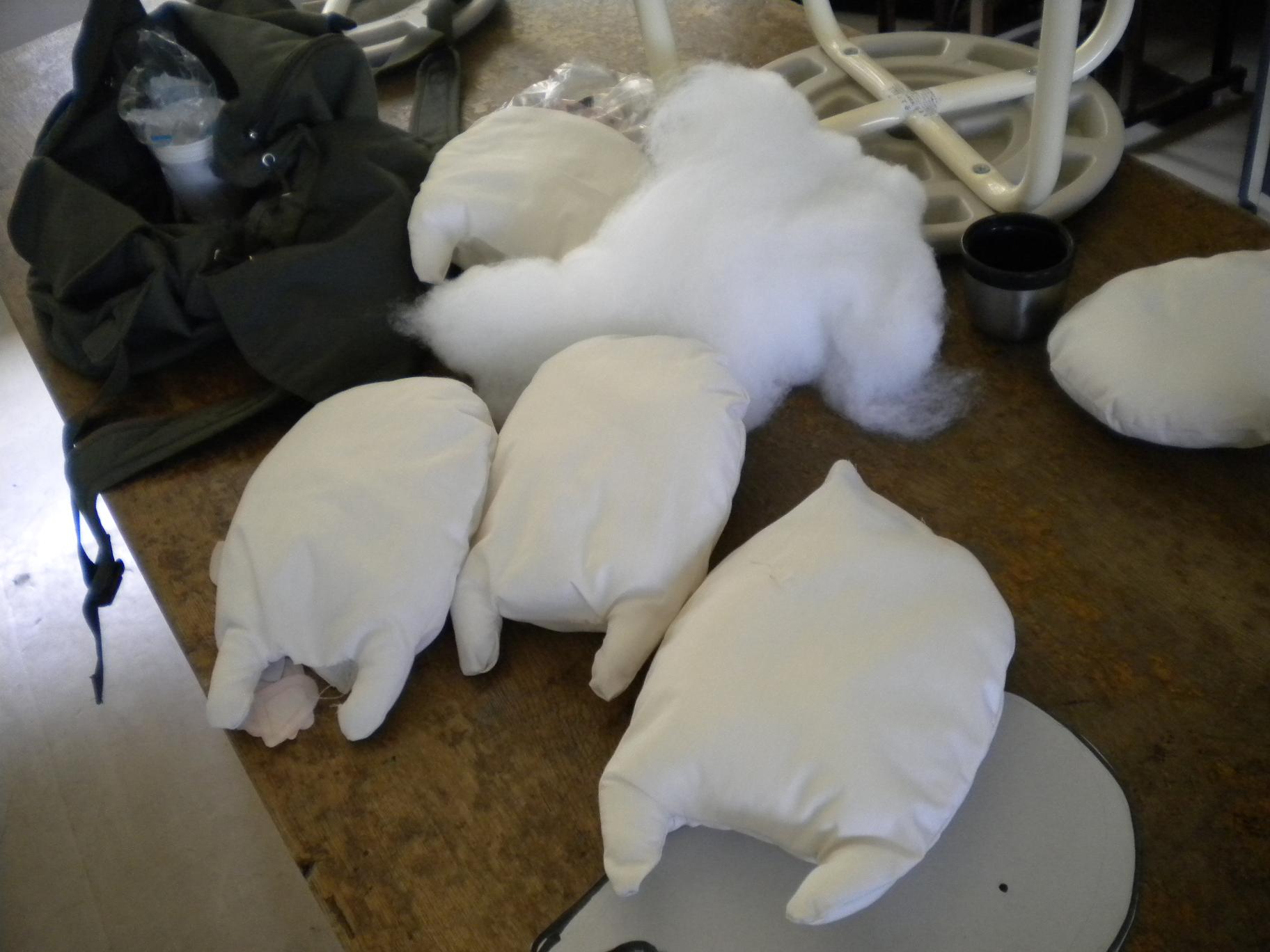 こちらは、綿も出現して、ふわふわした立体物ができていました。ミシンを使いイメージに合ったものをどんどん縫っています。2年生たちの成長ぶりは、本当にすごいです。