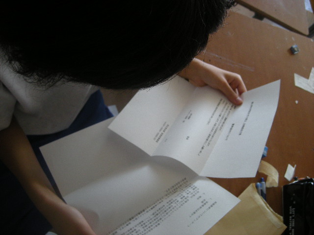 そして、美術部2年の生徒に協力していただき、様々な政党本部へ質問状を書くことにしました。質問の内容は「あなたの政党は、美術教育が必要と思いますか、それとも必要ないと思いますか」。今日、民●党から返事が来ました!!生徒も「まさか本当に返事が来るとは・・・!」と驚いていました。手紙の内容は会場で見てください。