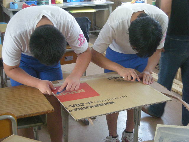 櫻ヶ岡中学校の中平です。長野県の夏休みはとっても短いです。本校の夏休みもあと3日となりました。今日も、さくらびキッズは熱く制作しています。