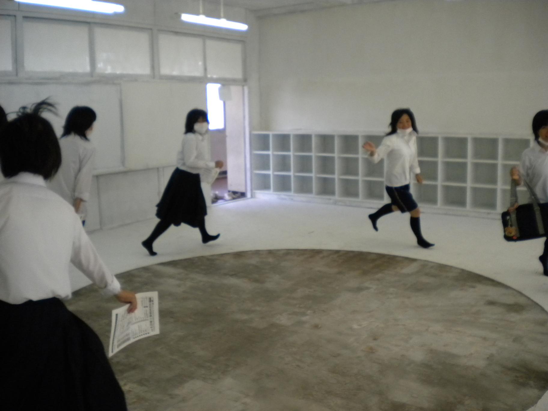 校舎立替という機会でのアートプロジェクト。こんなことやっていいの?というワクワクするような展示におおはしゃぎな視察団。真っ白にペイントされた教室で走ってました。