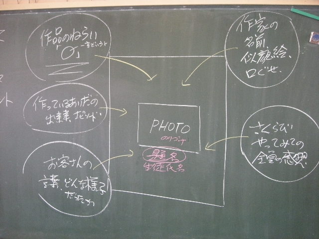 作家さんへのお礼の手紙も書きました。文例なしのオリジナルで一生懸命書きました。その中で、いつもは無口な生徒が手紙を書き終え「今までで一番いい手紙が書けた」と話していた手紙には、こう記されていました。「○○さん(作家さん)が残してくれたのは、素晴らしいアートだったけど、一番の作品はみんなの思い出でした。またお会いしましょう」