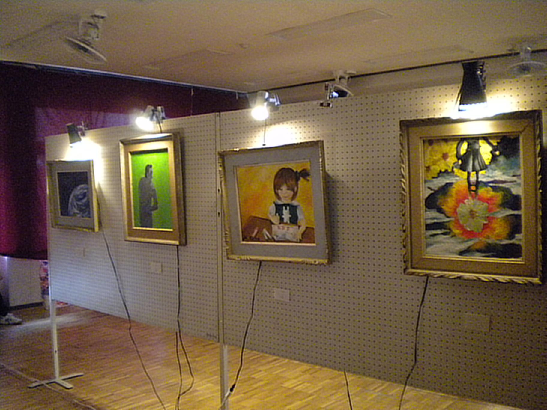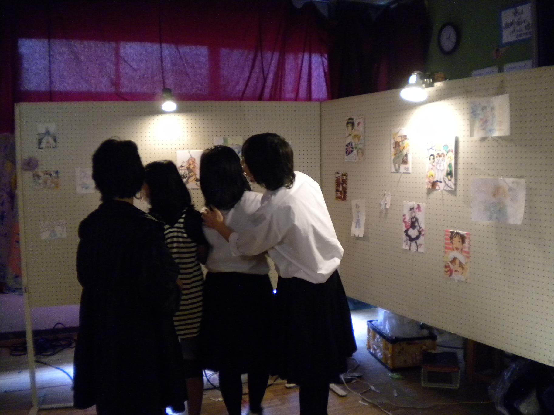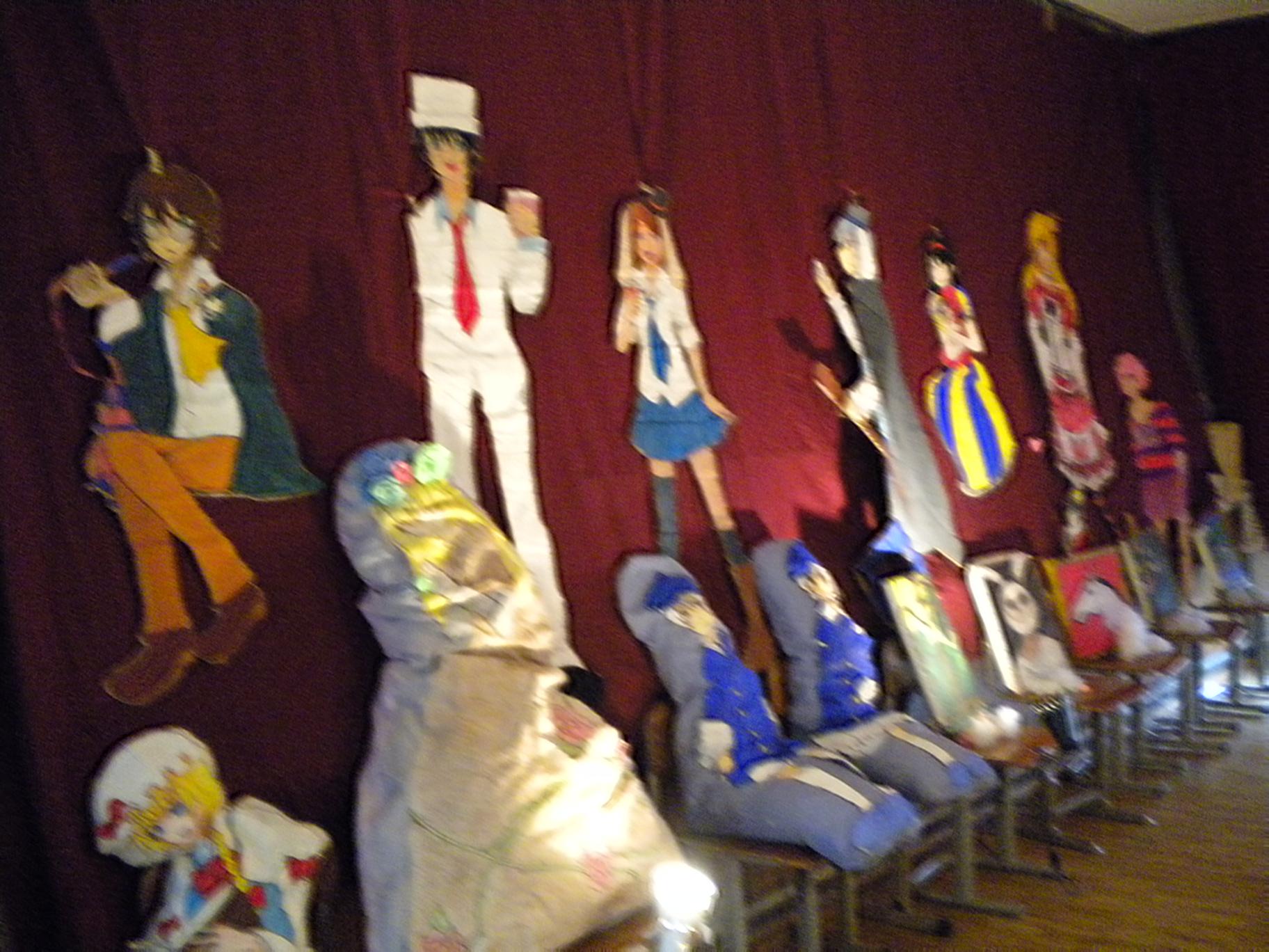 戸上中の中平です。つばさ祭と言えば、美術部展。例年2年生が中心となって企画準備をする美術部展です。今年のテーマは「不思議の国のアリス」。入室すると、いろいろなキャラクターが待っています。そして、1年生から3年生が描いた油彩画やイラストで楽しめる教室になっています。