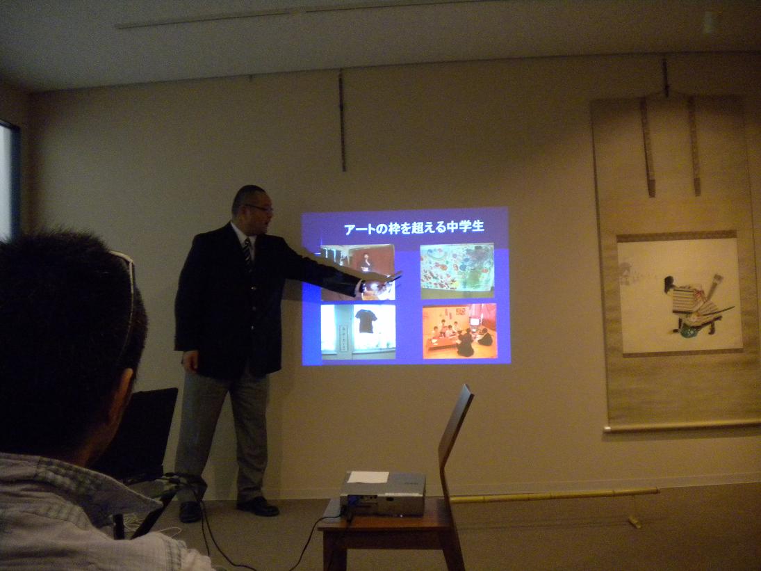 櫻ヶ岡中学校の中平です。昨夜7時から、長野市表参道にあるギャラリー・ガレリア表参道にて、「善光寺平表参道ギャラリーライン第二回勉強会」が行われました。私が講師と言うことで、長野市内のギャラリー経営者や美術館学芸員、商店街の方、信州大学の学生さんら30人が集まりました。