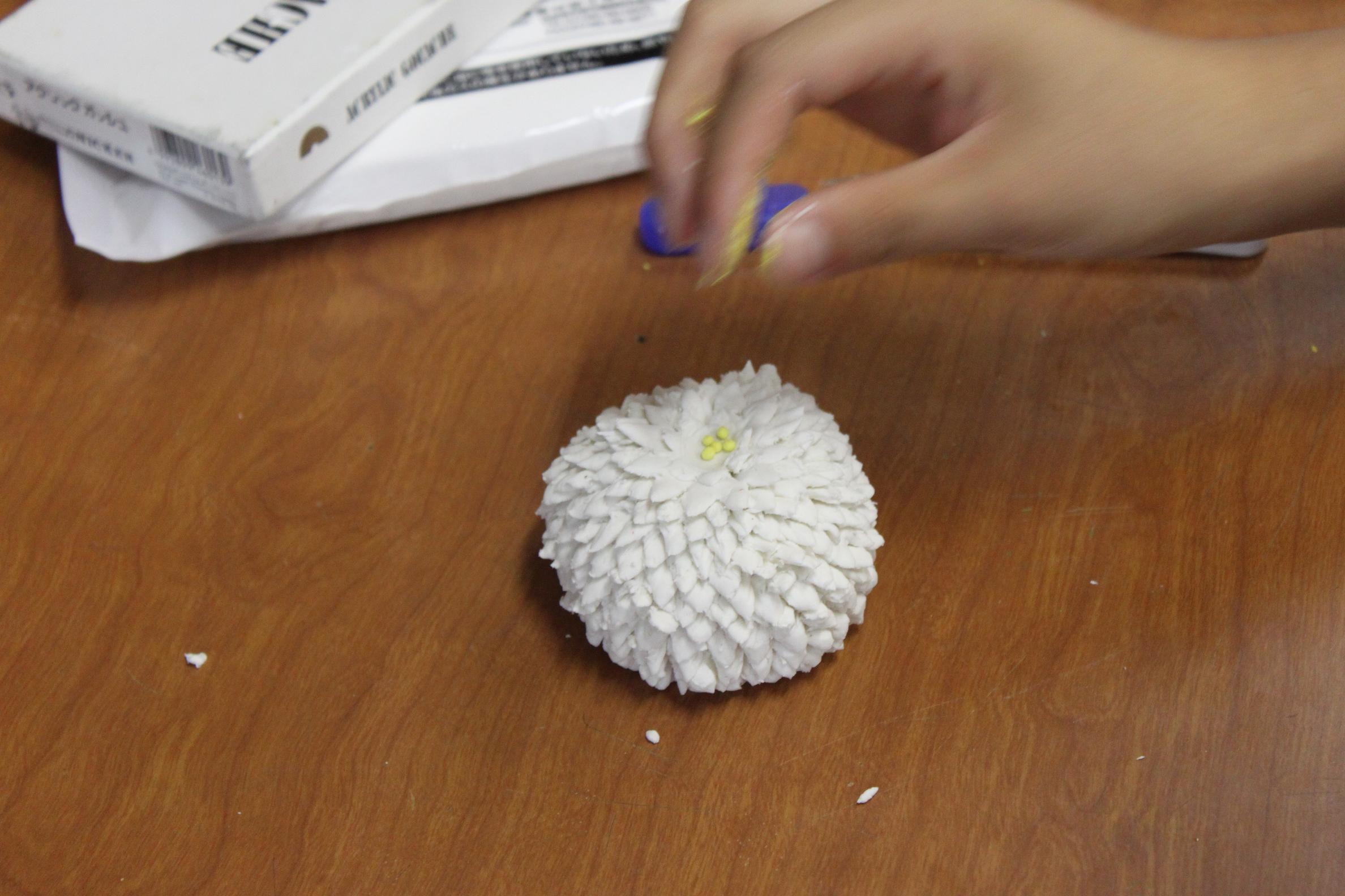 とがびアートプロジェクトに向けて、和菓子を粘土でつくる生徒たち。和菓子処「青柳」さんでみた、菊を制作。かなりの出来栄えでした。和菓子って本当にすてきだったんだな。改めて魅力を感じています。