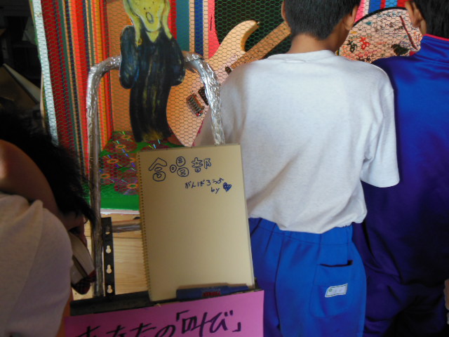 10月19日金曜日、午後1時25分から35分までの10分間、ここカオスギャラリー・アリーナ?にてブラブラブラザーズが、みなさんの叫びを代わりに叫びます。録音された実際の叫び声なども曲で使うようです。お楽しみに・・・・。