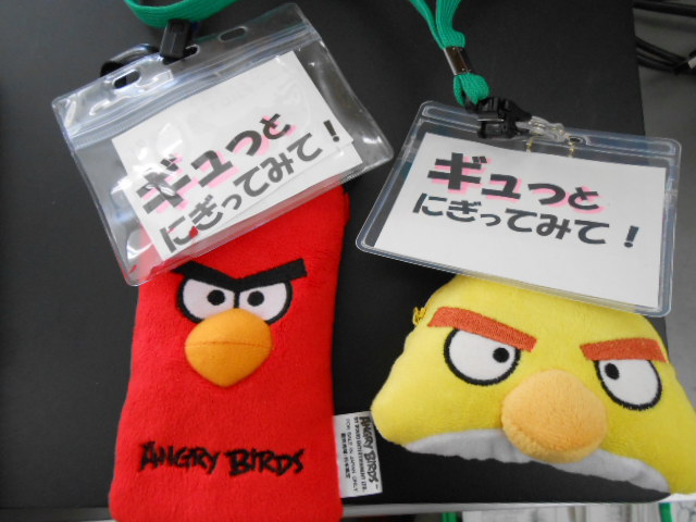 写真のように、かわいい要れものを首から下げて、校舎内をうろつき、ホッカイロが入ったキャラクター容器を、ギュッと握ってもらっています。