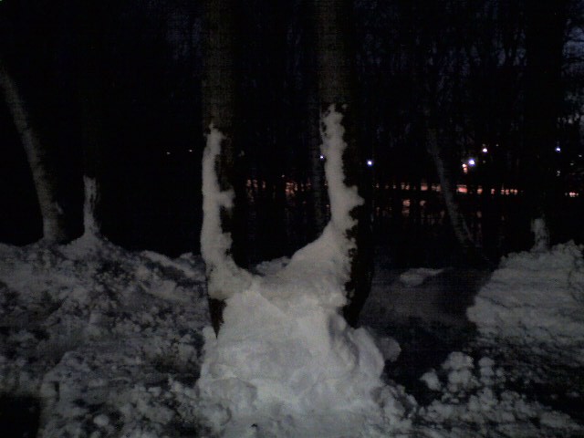 吹雪の時に偶然出来た、自然造形ですが、夜なので不気味。。