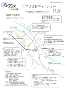 りくとうアートライン・セカンドステージ、東鳴子での展示場所がわかる「ごてんゆマップ11月」です。こちらからダウンロードできるほか、運がいいと鳴子御殿湯駅などで手に入れることができます。