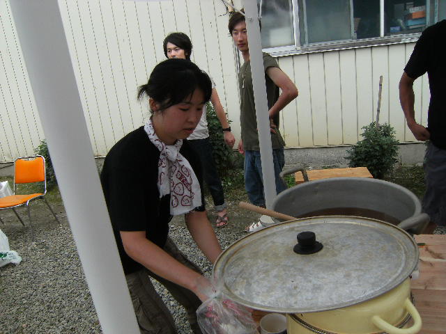 作曲家の大場陽子さんも駆けつけ、屋台を運営。
