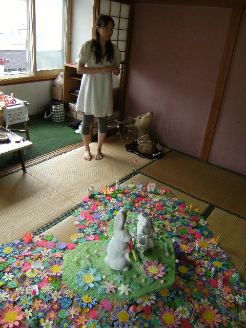 小野寺さんは仙台在住で、たいへん意欲的にアイロンビーズの可能性にいどんでいます。今回「アート湯治祭」でも、勘七ギャラリーの一室を使ったインスタレーションを展示。