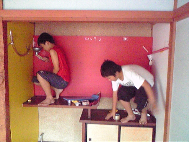 旅館の壁に直、もおもしろいのですがさすがにそこはちょっとまずいのでプラダンシートを壁にはり、そこにコースを設置してビー玉のコースをつくります。