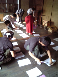 三枚目は第二弾製本のため、来客者にも手伝っていただいた製本作業風景
