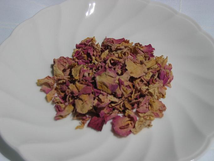 (%緑点%)本日のハーブティーは、ローズヒップスとピンクローズ(右の写真)をブレンドしました。