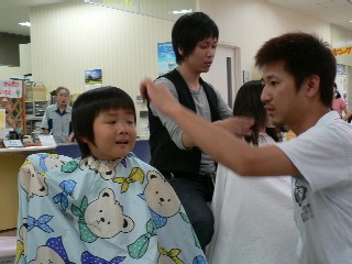 チャリティー子どもカットとは、お子さんのヘアカットを500円で行って、その代金を、お客さんが選んだNPOに寄付するという試みです(%晴れ%)(→参照)