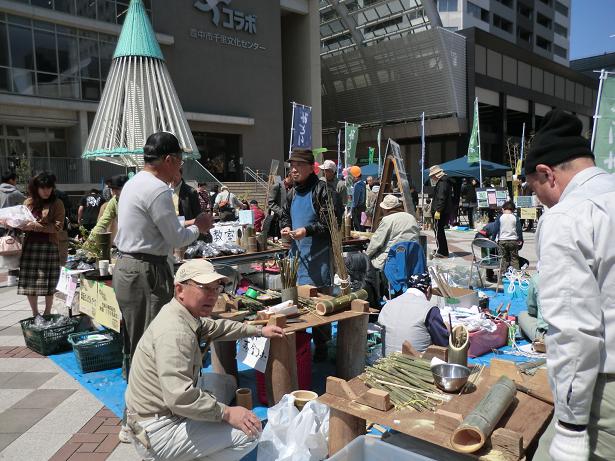 (%音符2%)毎年秋にかやの広場で開催している「山とみどりの市民イベント〜みどり生き生き みのお生き生き 体験フェア〜」ですが、ここ数年、春のこの時期に、みのお山麓保全委員会が主催で、千里中央せんちゅうパル北広場を会場にしてイベント開催しています。(%とんかち%)