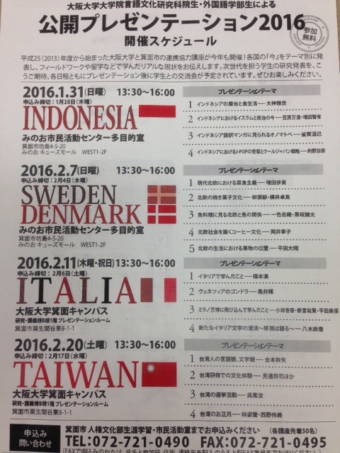 (%ノート%)第3弾は、2月11日イタリア、第4弾台湾の公開プレゼンテーションを開催します。第3弾、第4弾は会場を阪大箕面キャンパスに移して開催します。