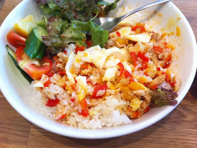 こうやって,”ぐじゃっ(%ショック男%)”ってまぜて食す.