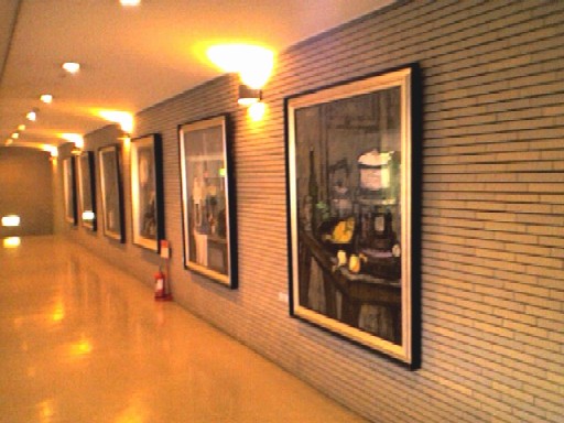 再開発ビル・壱番館2階に並んだ杉村作品。3階の市民図書館へのアプローチにもなっているのですが、みんなエレベーターで行ってしまうようです。