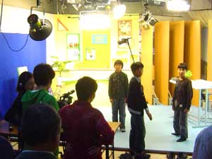 カメラ・マイクの扱いはもう手馴れたもの。見守る監督の表情も和やかです。