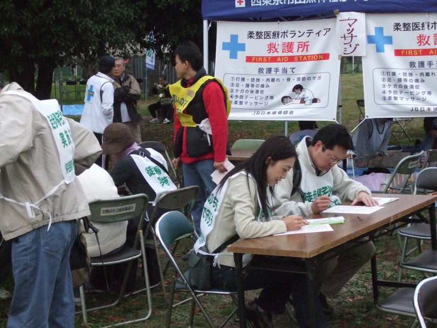西東京コースには8箇所か9箇所のステーションが設けられ、生協や連合東京の組合員や渋谷、中野、杉並、練馬の各区役所、西東京市役所、さらの各地のボランティアセンターの市民などが運営にあたっていました。また日本接骨師会や日本赤十字社の方々が救急センターを設けていました。